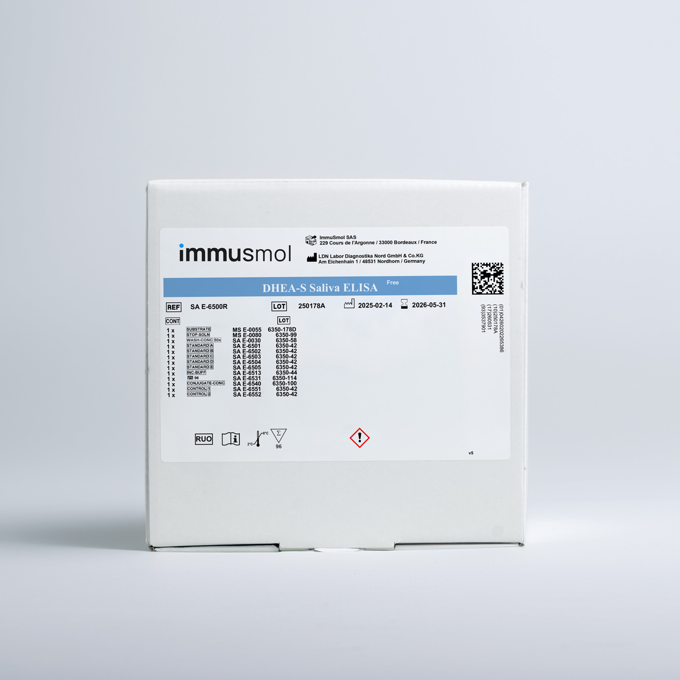 | Description | In vitro diagnostics / Research enzyme immunoassay (ELISA) for the quantitative measurement of DHEA-S in saliva. |