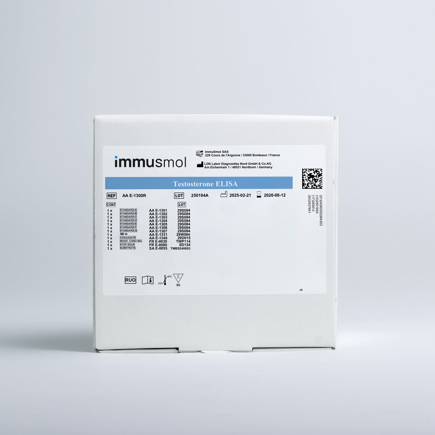 This Fast Testosterone ELISA kit enables the quantitative measurement of Testosterone in serum and plasma samples within 75 minutes, to evaluate endocrine functions, reproductive health, and in the context of behavioral and metabolic conditions. Intended for in vitro diagnostics and research applications, the test comes in 96-well plate format, allowing the screening of large experimental series within short lead times.